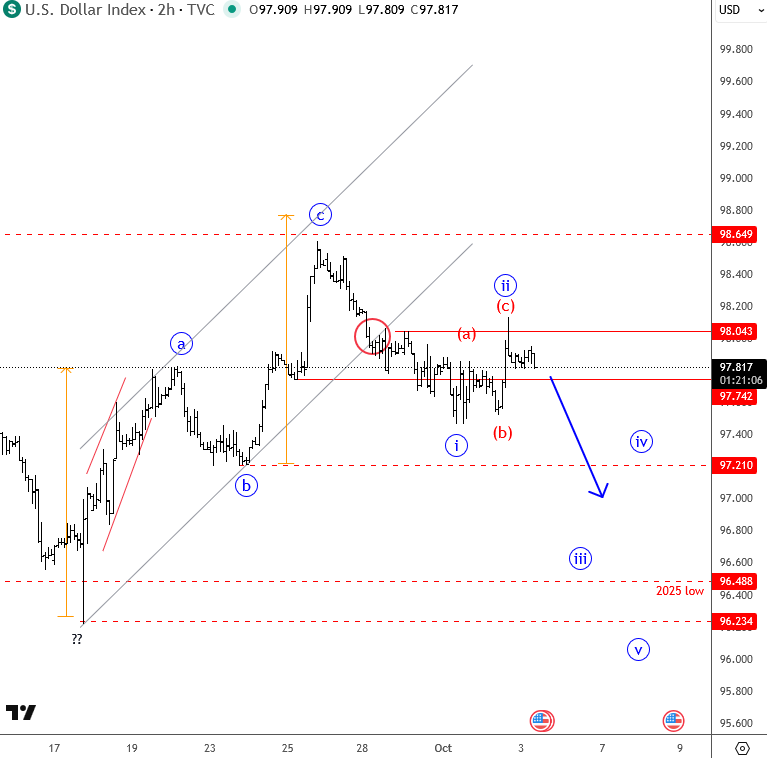 No NFP, Dollar Set For Further Decline![]() It should be an important NFP day, but since data collection activities for BLS surveys stopped, indicating no NFP and even that other reports indeed could be delayed. No one knows how long the shutdown will last. Its not only NFP, other data can be delayed too.. but whats most important is that economic data next month can be bad due to the pause on paper work, should have on impact on housing starts, gdp... Not to mention the opportunity for layoffs as Trump mentioned ( temporary suspension or permanent termination). So this puts Dollar into a bit difficult position, certainly not a bullish one. In fact, looking at the wave structure, it appears we have a three wave rise, followed by broken channel and also an impulse lower, that looks like a wave one followed by a wave two rally. This makes me think weakness is going to resume in sessions ahead, when other XXX/USD pairs can rise further. For more analysis visit us at www.wavetraders.com and apply for a 7 day trial with full access to our analysis. Coupon code: testwt7 Grega ![]() This article contains syndicated content. We have not reviewed, approved, or endorsed the content, and may receive compensation for placement of the content on this site. For more information please view the Barchart Disclosure Policy here.