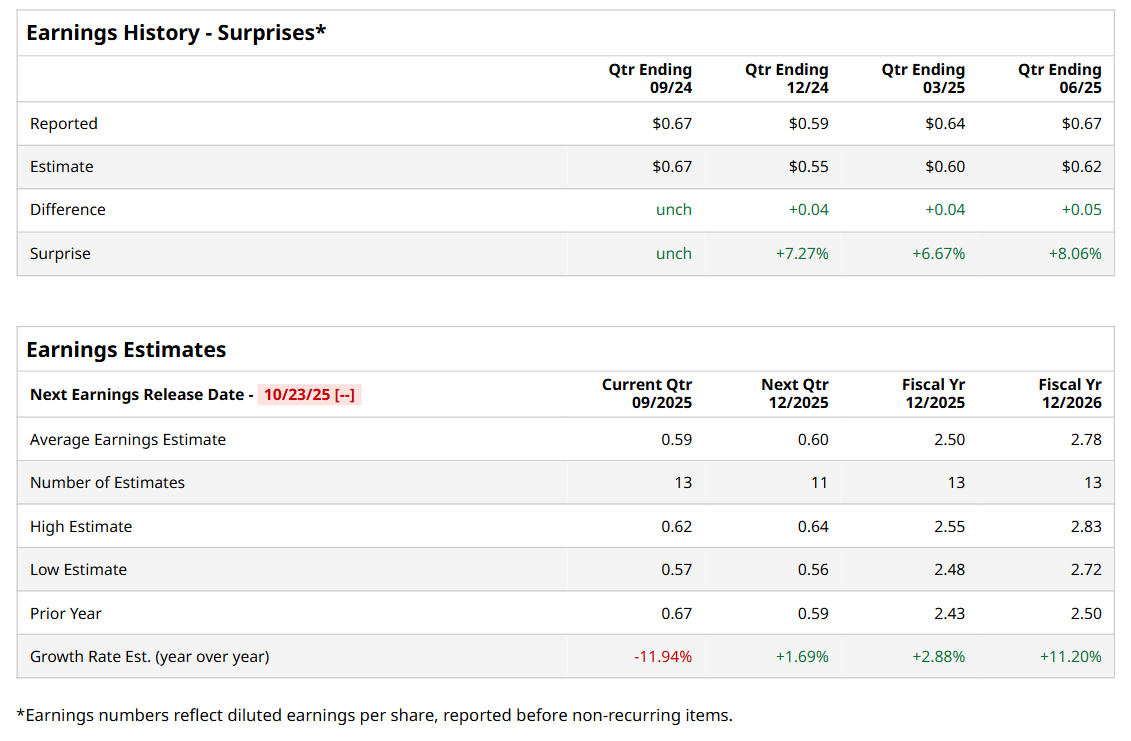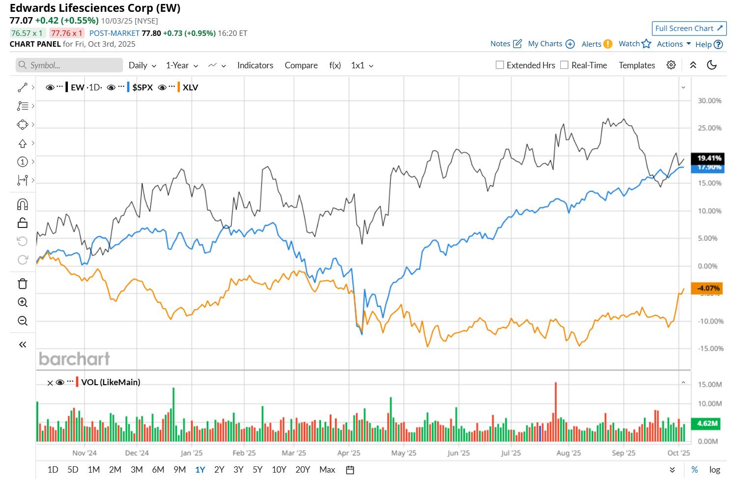 Here's What to Expect From Edwards Lifesciences’ Next Earnings Report![]() Valued at a market cap of $45.2 billion, Edwards Lifesciences Corporation (EW) provides products and technologies to treat advanced cardiovascular diseases. The Irvine, California-based company is best known for its transcatheter aortic valve replacement (TAVR) products under the SAPIEN line, as well as its rapidly growing transcatheter mitral and tricuspid therapies (TMTT) and surgical heart valve solutions. It is scheduled to announce its fiscal Q3 earnings for 2025 after the market closes on Thursday, Oct. 30. Ahead of this event, analysts expect this healthcare company to report a profit of $0.59 per share, down 11.9% from $0.67 per share in the year-ago quarter. The company has a promising trajectory of consistently beating or matching Wall Street’s earnings estimates in each of the last four quarters. In Q2, EW’s EPS of $0.67 exceeded the forecasted figure by 8.1%. For fiscal 2025, analysts expect EW to report a profit of $2.50 per share, up 2.9% from $2.43 per share in fiscal 2024. Furthermore, its EPS is expected to grow 11.2% year-over-year to $2.78 in fiscal 2026. ![]() Shares of EW have soared 17.9% over the past 52 weeks, outpacing both the S&P 500 Index's ($SPX) 17.8% uptick and the Health Care Select Sector SPDR Fund’s (XLV) 4.4% loss over the same time frame. ![]() Edwards Lifesciences released better-than-expected Q2 results on Jul. 24, and its shares surged 5.5% in the following trading session. Due to strength across all product groups, the company’s overall revenue improved 11.9% year-over-year to $1.5 billion, surpassing consensus estimates by 2.7%. Moreover, its adjusted EPS of $0.67 advanced 8.1% from the year-ago quarter, topping analyst expectations of $0.62. Additionally, EW raised its fiscal 2025 guidance, further bolstering investor confidence. It now expects sales growth to be between 9% and 10%, and projects adjusted EPS guidance to be at the high end of $2.40 to $2.50. Wall Street analysts are moderately optimistic about EW’s stock, with a "Moderate Buy" rating overall. Among 31 analysts covering the stock, 15 recommend "Strong Buy," one indicates a "Moderate Buy," 14 suggest "Hold,” and one advises a “Strong Sell” rating. The mean price target for EW is $86.83, implying a 12.7% potential upside from the current levels. On the date of publication, Neharika Jain did not have (either directly or indirectly) positions in any of the securities mentioned in this article. All information and data in this article is solely for informational purposes. For more information please view the Barchart Disclosure Policy here. |
