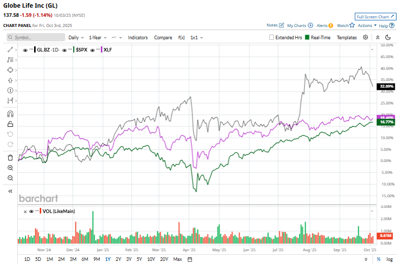 Here's What to Expect From Globe Life’s Next Earnings Report![]() Valued at $11.1 billion by market cap, Globe Life Inc. (GL) is a financial services holding company specializing in providing life insurance, annuities, and supplemental health insurance products across the United States. Operating through wholly-owned subsidiaries like American Income Life and Liberty National Life, the Texas-based company primarily targets lower-middle-income to middle-income families with affordable, straightforward policies. The insurance giant is expected to announce its fiscal third-quarter earnings for 2025 soon. Ahead of the event, analysts expect GL to report a profit of $4.52 per share on a diluted basis, up 29.5% from $3.49 per share in the year-ago quarter. The company beat the consensus estimates in three of the last four quarters while missing the forecast on another occasion. For the current year, analysts expect GL to report EPS of $14.43, up 16.7% from $12.37 in fiscal 2024. Its EPS is expected to rise 4.6% year over year to $15.09 in fiscal 2026. ![]() GL stock has gained 31.2% over the past year, outpacing the S&P 500 Index’s ($SPX) 17.8% gains and the Financial Select Sector SPDR Fund’s (XLF) 19.7% gains over the same time frame. ![]() Globe Life stock surged 5.4% after its Q2 earnings release on July 23rd, primarily due to strong bottom-line growth. Although the company missed revenue estimates, reporting $1.5 billion in total revenue, the net operating income per share was robust, jumping 10.1% to $3.27, beating consensus estimates. This bottom-line performance was underpinned by solid 4.5% growth in total insurance premiums (including a 7.5% jump in health premiums), which offset a notable drop and deterioration in net investment income and realized losses. Analysts’ consensus opinion on GL stock is highly bullish, with a “Strong Buy” rating overall. Out of 14 analysts covering the stock, nine advise a “Strong Buy” rating, two suggest a “Moderate Buy,” and three give a “Hold.” GL’s average analyst price target is $161, indicating a potential upside of 17% from the current levels.
