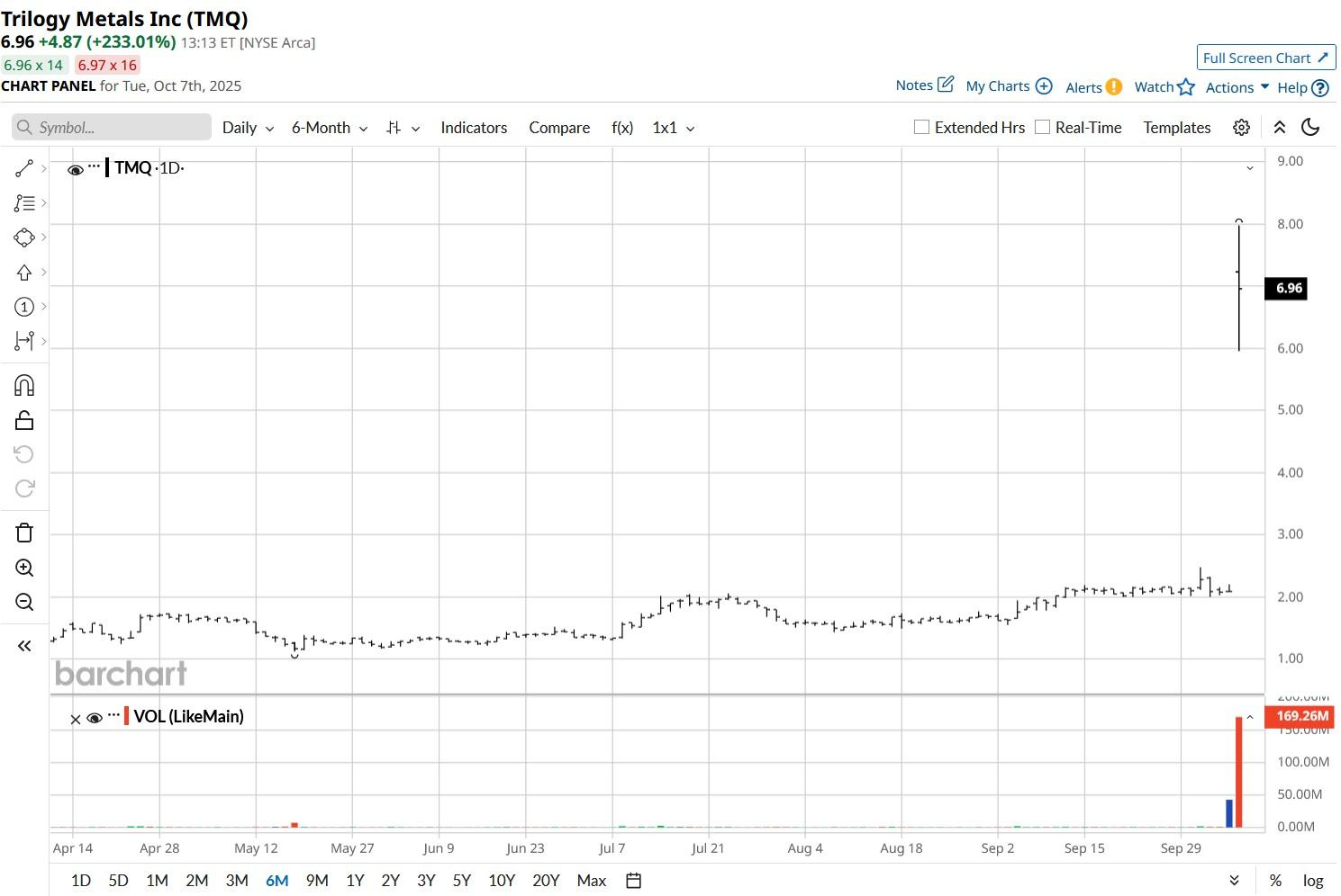 Trump Just Took a 10% Stake in Trilogy Metals. Should You Buy TMQ Stock Here?![]() Trilogy Metals (TMQ) shares more than tripled today after President Donald Trump’s administration announced a sizable position in the mining firm based out of Vancouver, Canada. The U.S. government has agreed to invest nearly $36 million in TMQ in exchange for a 10% stake. Trilogy Metals focuses primarily on the Ambler mining district in Alaska, which, according to the company’s chief executive, Tony Giardini, is “home to some of the world’s richest known copper-dominant polymetallic deposits.” Following today’s explosive rally, TMG stock is trading more than 500% higher than its price at the start of this year. ![]() What a Federal Stake Really Means for Trilogy Metals StockThe announced federal stake is meaningfully positive for Trilogy Metals stock primarily because it suggests potential alignment with federal priorities around domestic mineral security. TMQ assets include copper (HGZ25), cobalt, and zinc (ZAF26) – all of which are vital for clean energy, defense, and infrastructure. With Washington increasingly focused on reducing reliance on foreign supply chains, especially China, Trilogy projects could benefit from fast-tracked permitting, grants, or strategic partnerships. “This is a vote of confidence in American mining,” said a TMQ spokesperson. The Ambler Road project, long mired in environmental review, may now see renewed momentum. More importantly, the White House investment could attract institutional capital to TMQ shares as well, giving the firm the much-needed financial runway to advance exploration and development. Risks of Buying TMQ Shares at Current LevelsDespite the headline boost, investors should practice caution in initiating a position in TMQ stock as it remains a speculative bet at best. The mining company is yet to start generating any revenue. So far, it relies heavily on joint ventures and external funding. Therefore, its valuation – having surpassed $1.5 billion – is difficult to justify given the early stage nature of its assets and persistent permitting hurdles. Cash burn remains high, and dilution risk looms as the company seeks capital to fund exploration. Simply put, political involvement doesn’t guarantee project success. Until Trilogy Metals demonstrates tangible progress on its flagship Arctic deposit or secures long-term financing, TMQ shares may struggle to sustain its rally. Wall Street Warns of a Potential Crash in Trilogy MetalsInvestors should also note that Wall Street firms continue to see potential for a massive crash in Trilogy Metals stock from current levels. The consensus rating on TMQ shares sits at “Hold” only with the mean target of $1.94, suggesting they could lose as much as 70% in the coming months. ![]() On the date of publication, Wajeeh Khan did not have (either directly or indirectly) positions in any of the securities mentioned in this article. All information and data in this article is solely for informational purposes. For more information please view the Barchart Disclosure Policy here. |