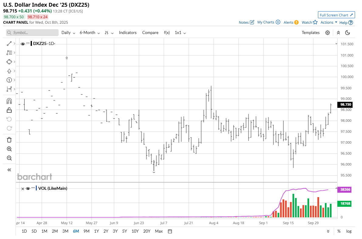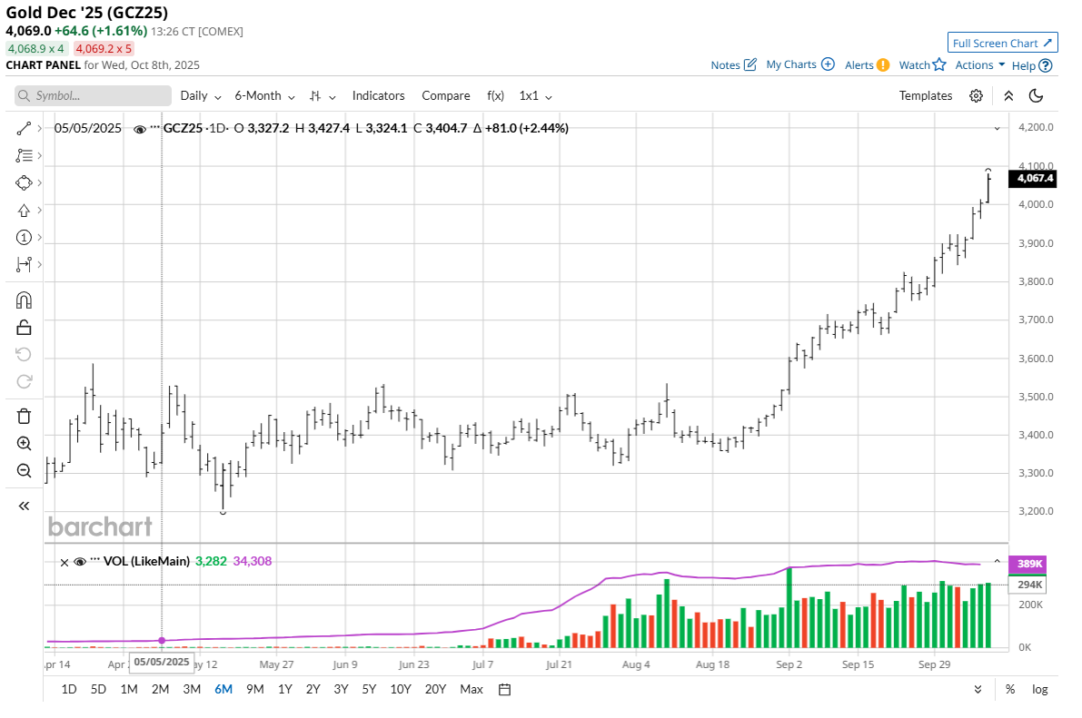 Gold, Silver, and U.S. Stocks Are All at Record Highs. What Gives?![]() I was getting ready to write my weekly “Front Burner” feature today and I was bandying about ideas for a topic. I was surely going to write about precious metals as gold (GCZ25) today hit a record high of $4,072.00 an ounce basis December Comex futures. Silver (SIZ25) today hit an all-time high of $49.55 an ounce in December Comex futures. ![]() ![]() Then, a Reuters metals reporter called me to ask about what’s driving the major bull runs in gold and silver. I was explaining to him all the fundamental elements driving safe-haven demand to the gold and silver markets, including marketplace uncertainty regarding the U.S. government shutdown that has left many markets devoid of fresh economic news to drive price action. Also, France’s political turmoil at present has unnerved European markets and European Union leadership. The Russia-Ukraine war is presently running hotter. There are financial troubles in Argentina as its currency is losing value. Japan’s political and economic woes are creating anxiety in the currency markets. Furthermore, I told the Reuters reporter that most major central banks are leaning easier on monetary policy, which supports better demand for precious metals in the months ahead. And the central banks, themselves, are starting to stockpile more gold. That’s partly due to “de-dollarization” that has developed as countries push to move away from holding greenbacks in their sovereign reserves. These are bullish elements for the gold market that will likely continue to drive better demand for gold in the longer term. ![]() Also, gold and silver prices are in short-term and long-term price uptrends on the technical charts. That’s been driving chart-based speculator buying in both metals. The Reuters reporter then asked me what I thought might derail the major bull market runs in gold and silver. I proceeded to tell him that a calmer geopolitical scene would be bearish for safe-haven gold and silver. A Russia-Ukraine cease-fire or Middle East peace accord would be two calming elements. Falling crude oil prices are also bearish for metals markets. Crude oil (CLX25) is the leader of the raw commodity sector. Nymex crude oil prices last week hit a nearly four-month low. If oil continues to trend lower, that would be a bearish anchor on most raw commodities, including metals. ![]() An end to the easier monetary policy cycle from the major central banks would be a significantly bearish development for the gold and silver markets. Rising interest rates mean higher borrowing costs for consumers and businesses, and in turn, less demand for goods. Then the Reuters reporter asked me what I thought was a very compelling question: “What do you think record-high U.S. stock index prices mean for the gold and silver markets?” I had to think a little bit about that one. After my brief pause, I told the reporter that precious metals are a competing asset class with stocks. Money flowing into the stock market and pushing it to record highs (due to better risk appetite) should mean less money flowing into safe-haven metals. Yet, gold and silver are rallying on safe-haven demand (keener risk aversion). It’s not in the scope of this story to fully explain how the general marketplace can presently be showing better appetite to drive the stock market higher, while at the same time showing safe-haven demand to drive gold and silver to record highs. Suffice it to say I’ve always said the markets and traders are fickle, and this is one example. ![]() The reporter’s question on stocks and gold led me to a conclusion that I had not previously thought about. And that is that I believe part of the safe-haven bidding driving gold and silver prices still higher is a belief by more than a few traders and investors that the U.S. stock market is way overvalued, especially the artificial intelligence sector, and it may soon experience a blow-off top. That’s exactly what respected veteran commodity trader Paul Tudor Jones said this week. That scenario, if it plays out, could mean a big drop in the stock market at some point sooner rather than later. That would also likely include higher volatility in other markets. That’s fully bullish for safe-haven gold and silver markets. Remember, history shows that the month of October can be very unkind to stock market bulls. Tell me what you think. I really enjoy getting emails from my valued Barchart readers all over the world. Email me at jim@jimwyckoff.com. On the date of publication, Jim Wyckoff did not have (either directly or indirectly) positions in any of the securities mentioned in this article. All information and data in this article is solely for informational purposes. For more information please view the Barchart Disclosure Policy here. |