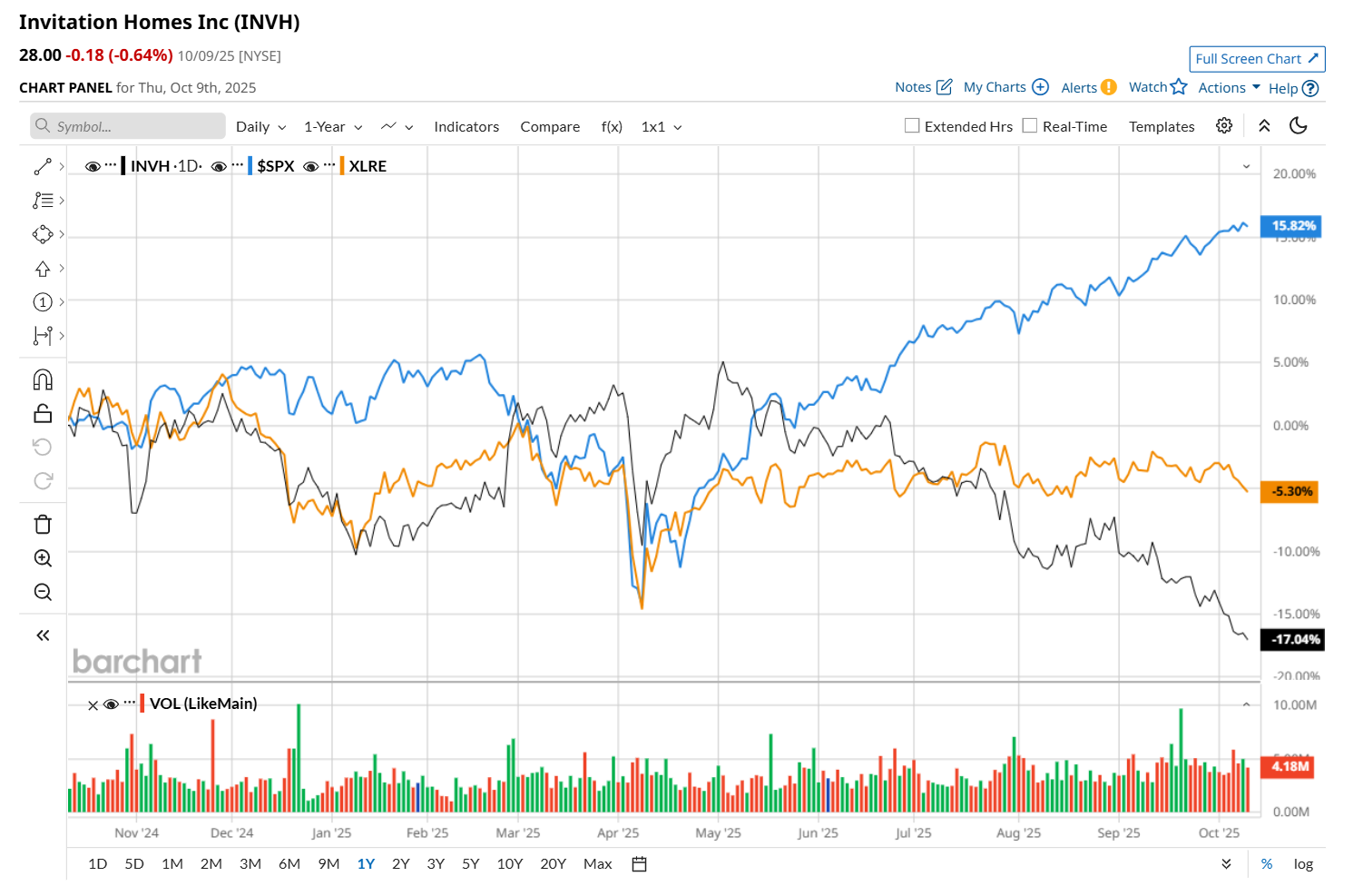 What You Need to Know Ahead of Invitation Home's Earnings Release![]() Dallas, Texas-based Invitation Homes Inc. (INVH) is a leading U.S. real estate investment trust (REIT) focused on the ownership, leasing, and management of high-quality single-family homes. Valued at a market cap of $17.2 billion, the company offers professionally managed homes in desirable neighborhoods with features like smart-home technologies, pet-friendly layouts, and proximity to schools and workplaces. It is expected to announce its fiscal Q3 earnings for 2025 after the market closes on Wednesday, Oct. 29. Before this event, analysts expect this residential REIT to report an FFO of $0.46 per share, down 2.1% from $0.47 per share in the year-ago quarter. The company has a promising trajectory of consistently beating Wall Street’s FFO estimates in each of the last four quarters. Its core FFO of $0.48 per share in the previous quarter exceeded the consensus estimates by 2.1%. For the current fiscal year, ending in December, analysts expect INVH to report an FFO of $1.87 per share, down marginally from $1.88 per share in fiscal 2024. Nonetheless, its FFO is expected to rebound in fiscal 2026 and grow by 4.8% year-over-year to $1.96. ![]() Shares of INVH have declined 15.8% over the past 52 weeks, underperforming both the S&P 500 Index's ($SPX) 16.3% return and the Real Estate Select Sector SPDR Fund’s (XLRE) 4.1% downtick over the same time frame. ![]() On Jul. 30, Invitation Homes reported better-than-expected Q2 results, yet its shares plunged 2.3% in the following trading session. A 40-basis-point decline in same-store average occupancy likely made investors jittery. However, on the brighter side, the company’s total revenue improved 4.3% year-over-year to $681.4 million, marginally surpassing consensus estimates. Moreover, its core FFO of $0.48 advanced 2.1% from the year-ago quarter, topping analyst estimates of $0.47. Wall Street analysts are moderately optimistic about INVH’s stock, with a "Moderate Buy" rating overall. Among 24 analysts covering the stock, 10 recommend "Strong Buy," one indicates a "Moderate Buy," and 13 suggest "Hold.” The mean price target for INVH is $36.07, implying a 28.8% potential upside from the current levels. On the date of publication, Neharika Jain did not have (either directly or indirectly) positions in any of the securities mentioned in this article. All information and data in this article is solely for informational purposes. For more information please view the Barchart Disclosure Policy here. |